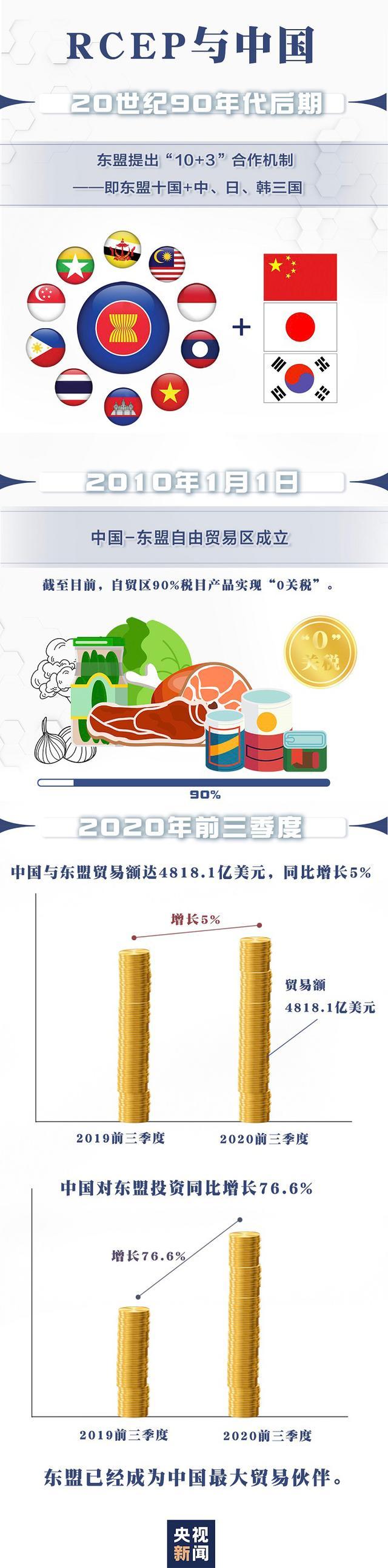 11月15日,區(qū)域全面經(jīng)濟(jì)伙伴關(guān)系協(xié)定(RCEP)正式簽署,包括東盟10國+5國(中國、日本、韓國、澳大利亞、新西蘭),涵蓋全球30%以上人口、GDP、貿(mào)易和投資的最大自貿(mào)區(qū)誕生,參與國之間超過90%貨物貿(mào)易將實現(xiàn)零關(guān)稅。