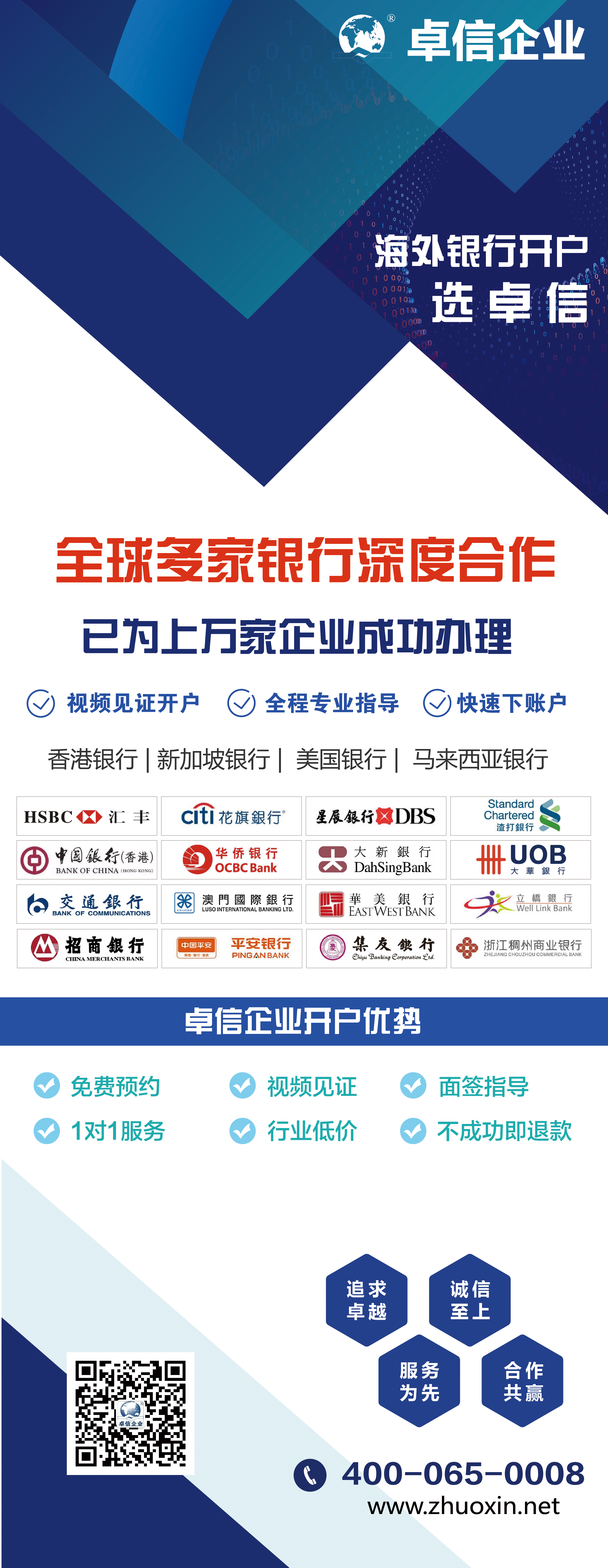 卓信擁有多年開戶經(jīng)驗,與多家銀行有良好合作關系,為客戶提供免費開戶預約服務,國內視頻見證開戶,全程保駕護航,歡迎隨時聯(lián)系!